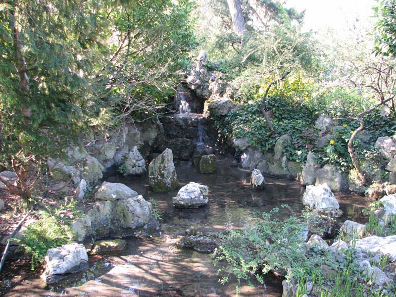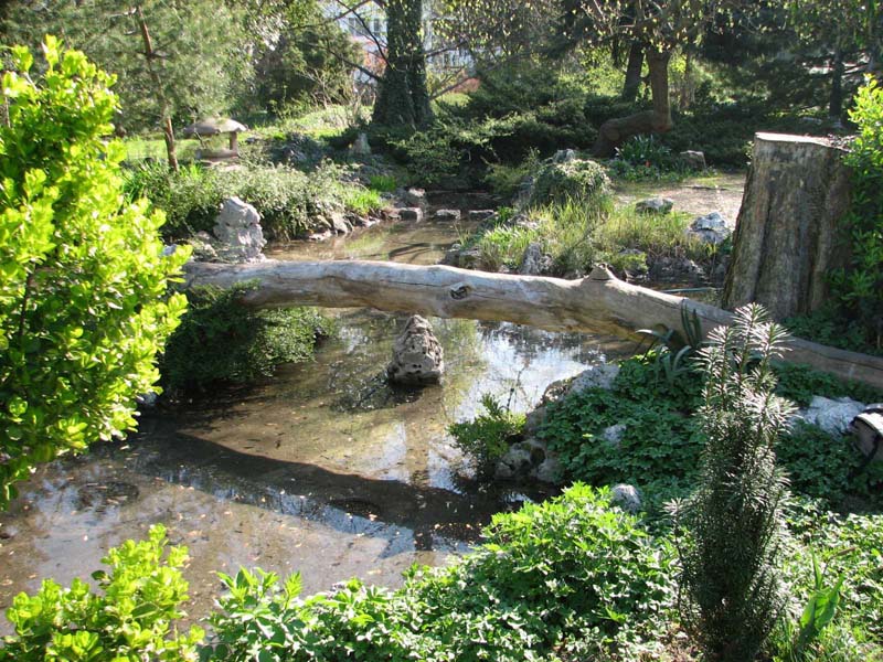 Alapja a kb. 200 m2 nagyságú, erősen tagolt partvonalú tórendszer, melyben a jelentősebb egységeket művészien elrendezve építették meg. Ezek: „Vízesés”, „Kincseshajó”, „Teknőcsziget”, „Darusziget” valamint a „Semmiség óceánja”. Átlagos vízmélysége 50 cm, rajta több áthidaló kő – és lépőkő vezet, melyek megkönnyítik a rejtett zugok felderítését, megtekintését. A tó vízfelszíne, illetve az elszivárgó víz kedvező mikroklímát teremt az igényesebb növények számára, ezzel biztosítva az optimális környezeti feltételeket.