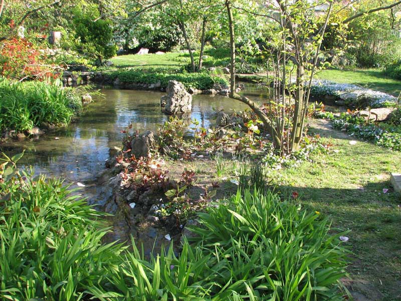 A tó felszínén úszónövények, (Pistia stratiotes, Eichornia crassipes), tündérrózsák; a vízparton bambusz (Phyllostachys viridiglaucescens) és vízparti évelők teszik még látványosabbá a kertet.
